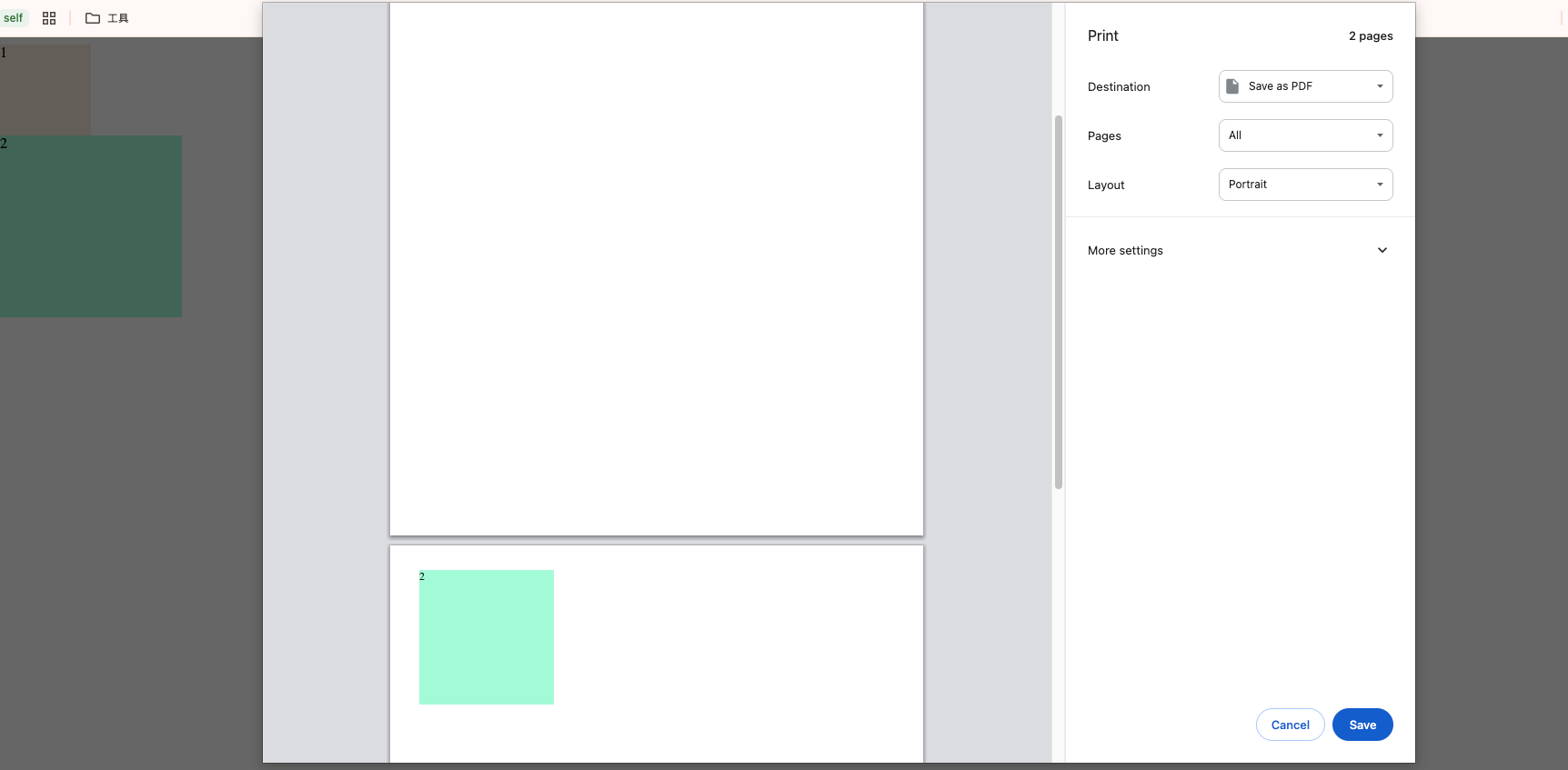 在浏览器上打印网页,可以看到 box1 和 box2 都在同一页。