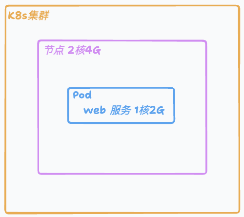 需要注意的是: 在 K8s 集群中,Pod 的资源总和不能超过单个节点的可分配资源容量。例如,一个由三台2核4G节点组成的集群,其逻辑资源池看似为6核12G,但无法调度一个需要3核6G资源的 Pod 到其中任何一个节点上,因为每个 Pod 都必须完整地运行在单个节点之内,其资源需求必须能被某个节点独立满足。