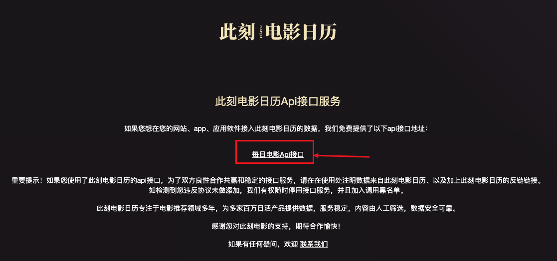 顺着这条线索,我找到了一个宝藏网址:此刻电影日历的API。