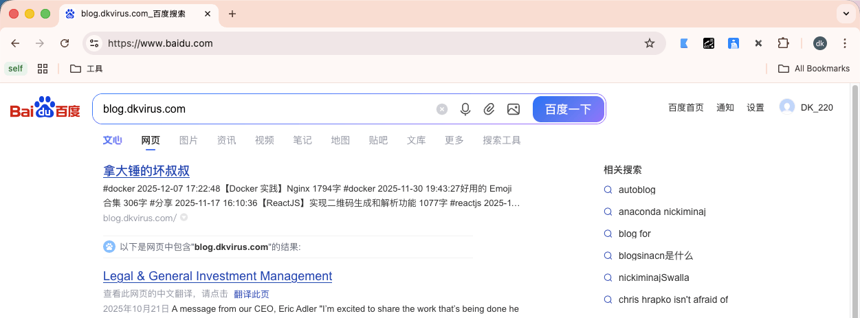 我们在上一步拦截并修改了请求的路径和参数,实际请求的是 https://www.baidu.com/s?wd=blog.dkvirus.com